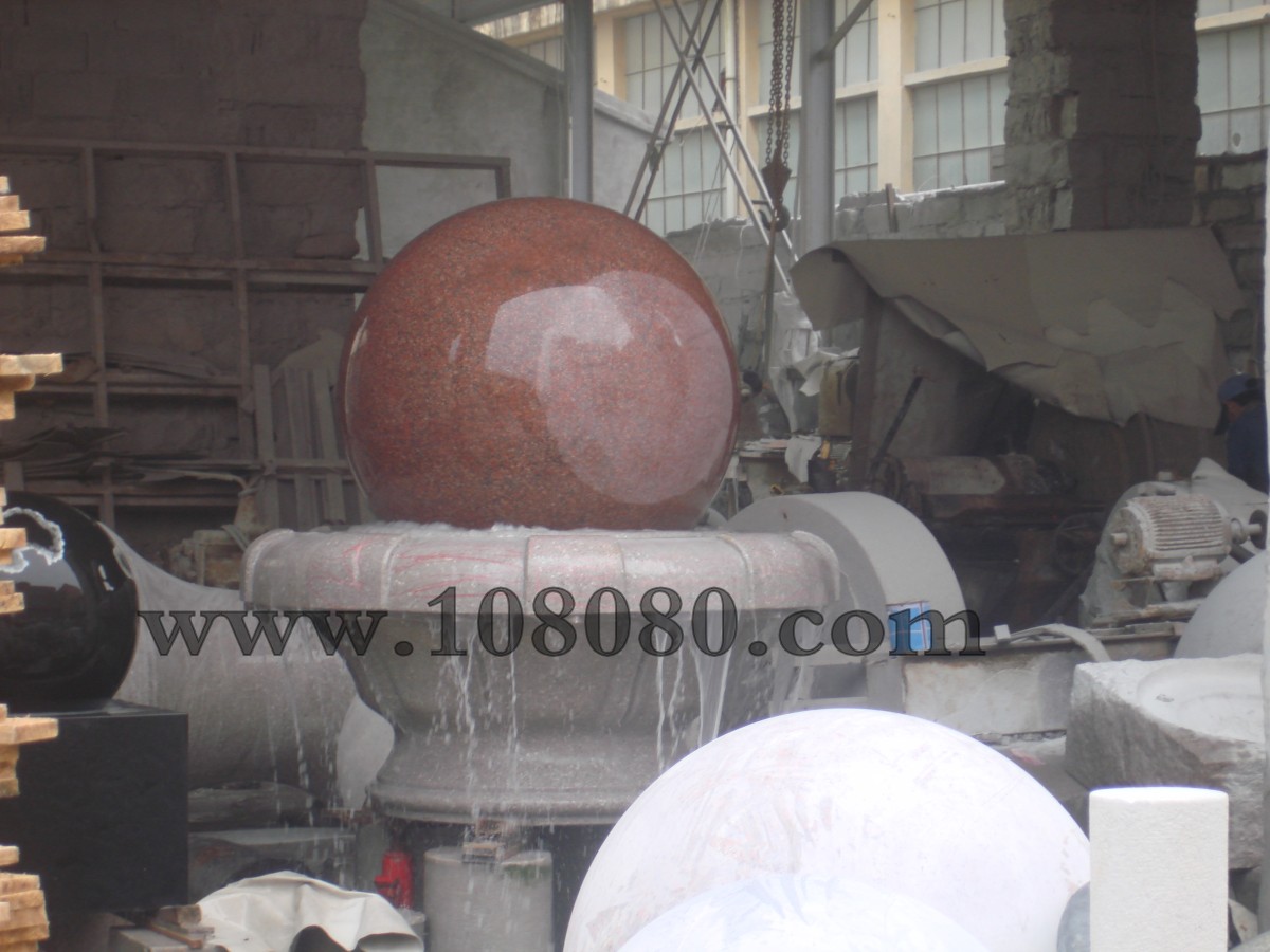 青岛晚霞红大理石风水球制作...