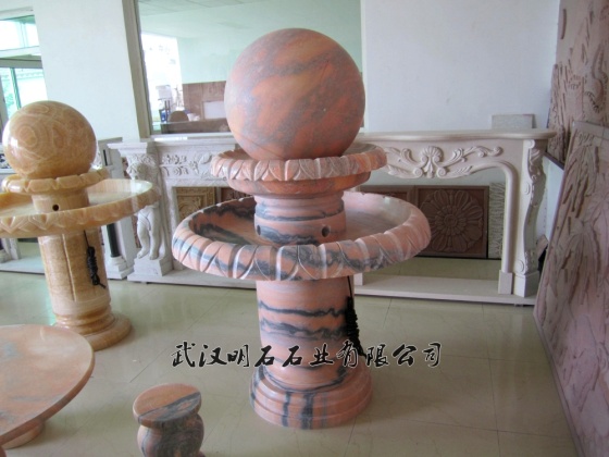 青岛晚霞红大理石风水球制作...