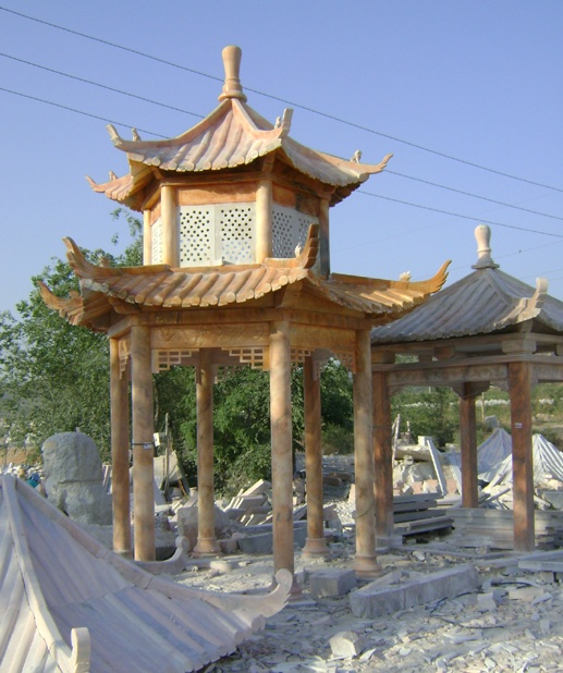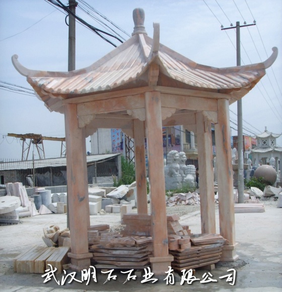 晚霞红石雕凉亭