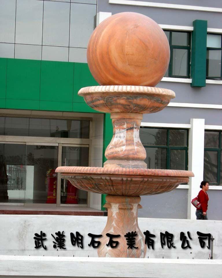 青岛晚霞红大理石风水球制作...