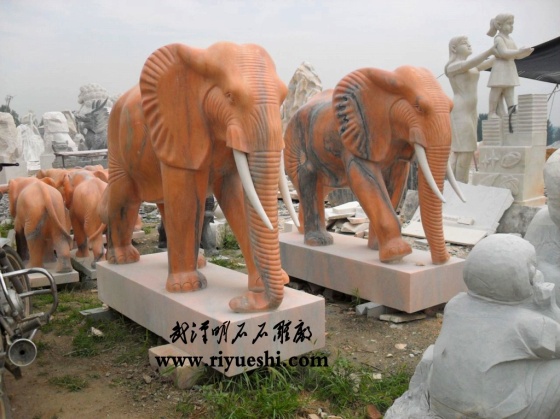晚霞红石雕大象